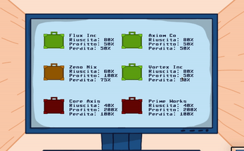 The workday is divided into two phases, the first at the computer. As a manager, you need to choose which four stocks to invest in. The company is looking for bold investments, but not too risky. Make sure to balance your choices carefully to avoid penalties, and evaluate the three parameters: the likelihood of success, the profit in case of success, and the loss if things go wrong.