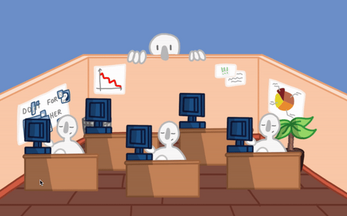 In the office, your job is to oversee your employees. If they work hard, there will be extra income beyond the investments. Click on the employees with the mouse to motivate them to work, but be careful: when an employee is visibly stressed, it's better to let them catch their breath for a few seconds.